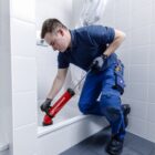 Herramienta básica óptima para instaladores, conserjes y limpiadores de desagües para la eliminación rápida de bloqueos simples en tuberías de conexión de lavabos, fregaderos, bañeras e inodoros mediante el principio de succión/presión.
