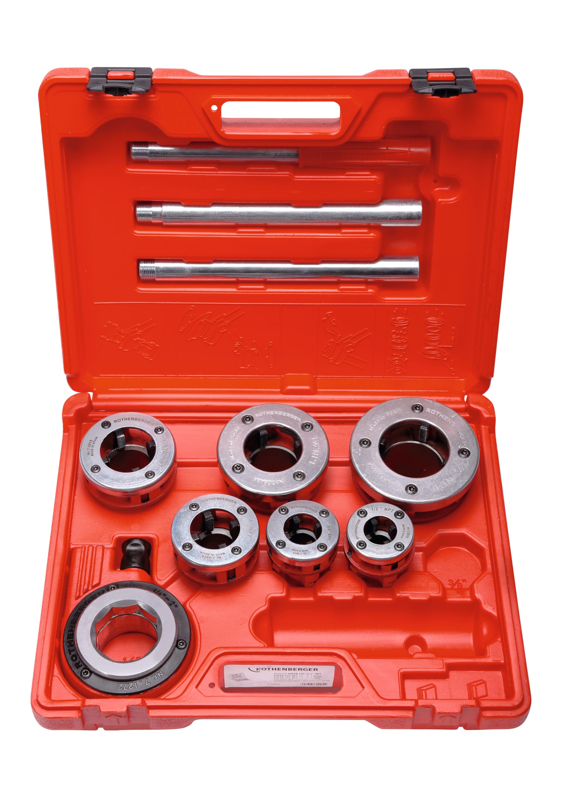 La matriz de roscar SUPER CUT es adecuada para realizar uniones roscadas precisas y conformes con las normas en acero no aleado. El soporte de cambio rápido garantiza un trabajo flexible gracias al cambio sin esfuerzo de las cuchillas de roscar. El ángulo de carraca de 22,5° garantiza un trabajo sencillo incluso en lugares de difícil acceso.